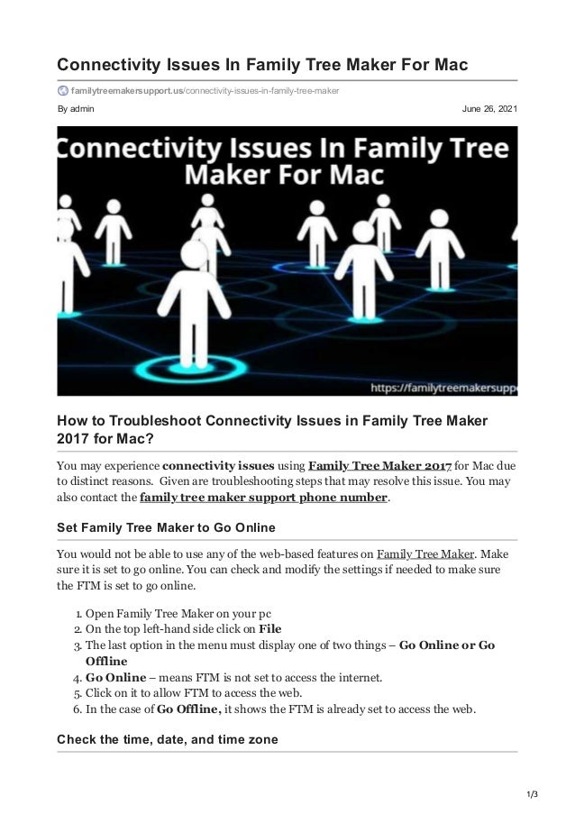 Make sure you have not selected an option called go offline. However, the safest way to move your tree is to create a backup le in the version of ftm where it currently is, and then restore the tree from that le in the latest version of family tree maker. Finding help with the family tree maker on a mac/apple computer. Please follow the steps as it described below.